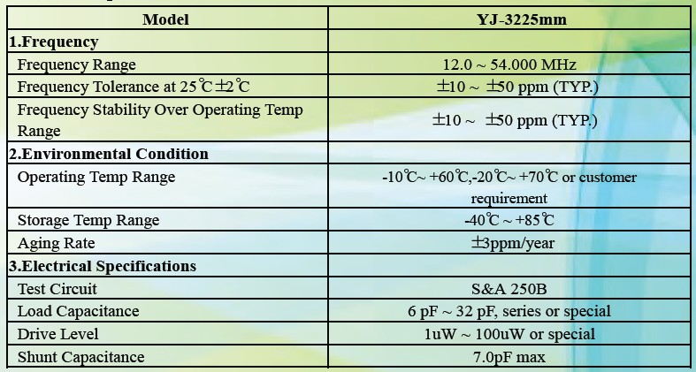 - 應(yīng) 用: 小型表面貼片型晶體諧振器,最適合用于汽車電子領(lǐng)域要求高,薄型具備強(qiáng)防焊裂性,3225具有耐熱,耐振,耐撞擊等優(yōu)良的耐環(huán)境特性.