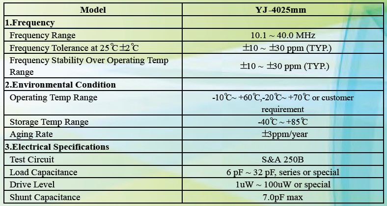 石英晶振4025規格