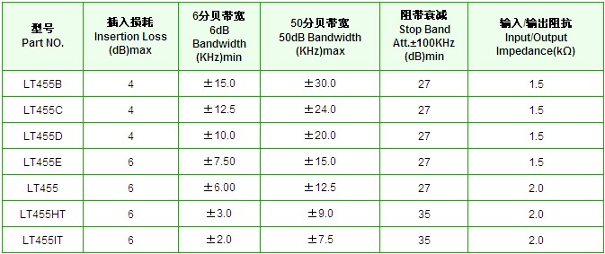 LT455E陶瓷濾波器規格