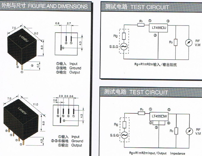 LT455BU陶瓷濾波器尺寸