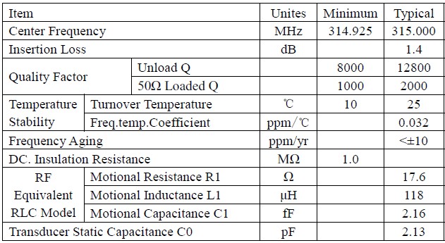 聲表面濾波器R315規格圖