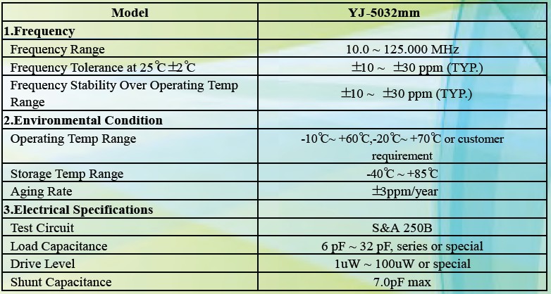 石英晶振5032規格