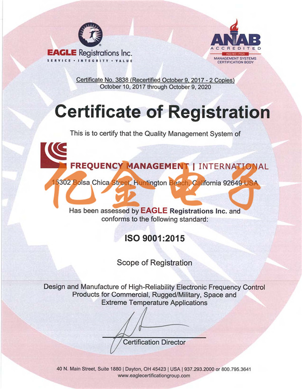 FMI晶振ISO9001質量體系認證