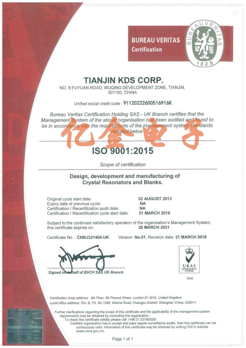 - [2019-08-20]美國Vectron晶振集團的AS9100航空質量...