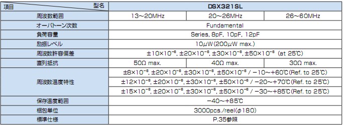 DSX321SL晶振規(guī)格