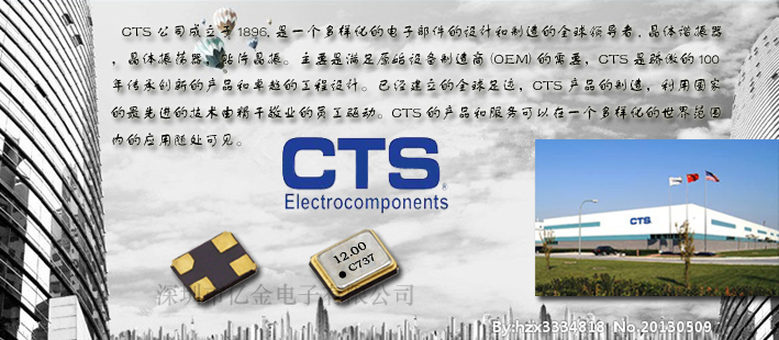 CTS是一家集晶體的研發(fā)、生產(chǎn)、銷售為主的晶振廠家.產(chǎn)品應(yīng)用范圍包含行動(dòng)電話、平板電腦、衛(wèi)星通訊、車載系統(tǒng)、全球定位系統(tǒng)、個(gè)人電腦、無線通信及家用產(chǎn)品等,扮演基本信號(hào)源產(chǎn)生、傳遞、濾波等功能.持續(xù)致力于技術(shù)研究開發(fā)及品質(zhì)落實(shí)扎根,營(yíng)運(yùn)據(jù)點(diǎn)遍布臺(tái)灣、中國(guó)大陸、日本、新加坡、美國(guó)及歐洲等世界各地,使希華得以提供服務(wù)予世界電子大廠.