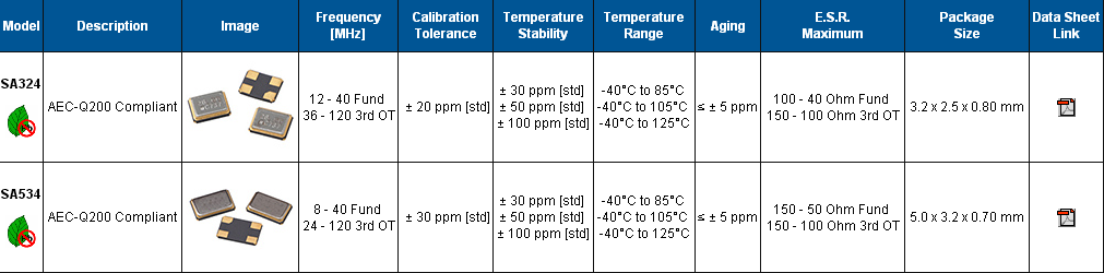 ±15 ppm, ±20 ppm, ±30 ppm, ±50 ppm, ±100 ppm |