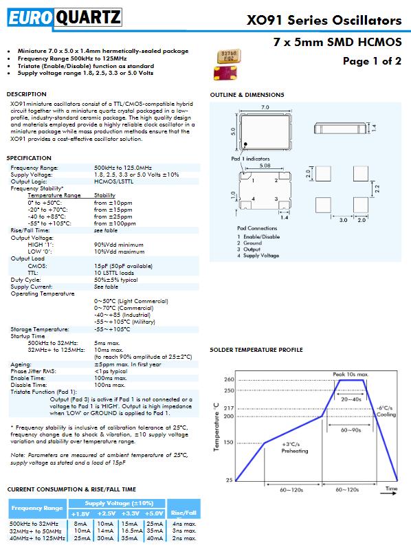 EUROQUARTZ晶振,XO91型號晶振,XO91050UITA-50.000MHZ晶振