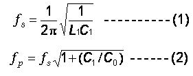 在評估共振時的等效線路時, 串聯諧振頻率及并聯諧振頻率, fs and fp , 是最重要的二個頻率參數. 對于串聯諧振頻率及并聯諧振頻率( fs and fp )二者的關系, 我們可以用下列公式來表達: .png)