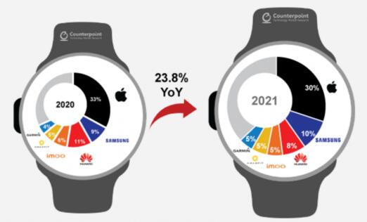 調(diào)研2021年智能手表銷(xiāo)售份額,華為居第三,蘋(píng)果依然獨(dú)領(lǐng)風(fēng)騷