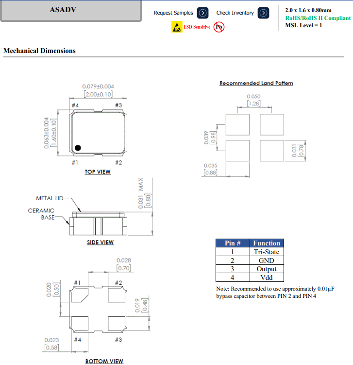 | ASA-16.000MHZ-L-T | Abracon晶振 | ASA | 16MHz | HCMOS | 3.3V | ±50ppm |