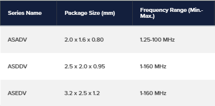 該SPXO系列中系列之間的主要區別在于封裝尺寸和頻率范圍。請參閱下表以供參考。