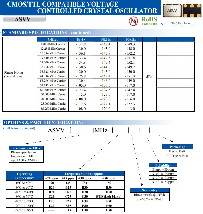 ASVV系列編碼ASVV?-32.768MHZ?-N152?-T壓控晶體振蕩器