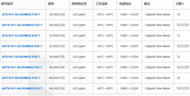 從下表來看,主要區別是頻率和 TCXO 與 VCTCXO。希望簡化設計的工程師可以使用這些振蕩器作為固定電壓 TCXO 和 VCTCXO 的直接替代品,只需最少的設計工作,同時消除與偏置相關的頻率變化和特定于偏置的時鐘源選擇。