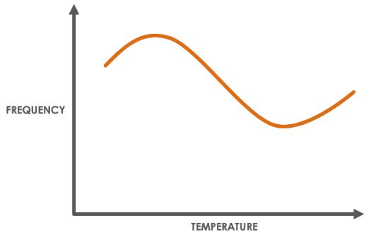 在設計晶體的轉折點時,必須考慮一個常見的設計權衡。理想的設計目標是將晶體的轉折點設置在 OCXO 的最高工作溫度之上。這是因為烤箱可以將晶體“加熱”到設定溫度,但如果周圍環境比這個設定點熱得多,晶體最終會加熱到超過它的設定點。將轉折點推高的不利之處在于頻率與溫度的曲線變得更加尖銳。這有效地縮小了烤箱的操作窗口,并使烤箱的準確性變得至關重要。將轉折點推高的另一個主要缺點是晶體老化性能降低。