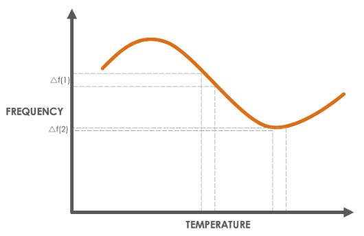 晶體爐的頻率輸出取決于石英晶體的溫度。 您可以在下圖中看到,溫度會對振蕩器的頻率產生重大影響。 在大多數應用中,可以使用更簡單的 TCXO 或溫度補償晶體振蕩器來減少環境溫度變化的負面影響。但是在某些環境中,進口TCXO晶振無法滿足應用程序的穩定性要求。在這些情況下,RF 工程師可以更進一步,利用 OCXO 提高的穩定性。