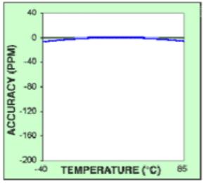 理想的精確計時器件是集成了RTC、TCXO和石英晶體的單芯片方案。DS3231S、 DS3232和即將公布的DS3234既是這樣的器件。這些器件具有無與倫比的精度:0°C到+40°C范圍內精度為±2.0ppm,相當于每年±1.0分鐘;-40°C到0°C和+40°C到+85°C范圍內為±3.5ppm,相當于每年±1.8分鐘。最差情況下所能提供的精度如圖所示。如上所述,集成TCXO使晶體原有的拋物線特性曲線變成較為平坦的曲線 與上述TCXO方案相同,完全集成的器件經過工廠校準,不需要用戶校準,也不需要額外的開發投入。它將同樣的功能集成在更小的面積上,同時也降低了系統成本。