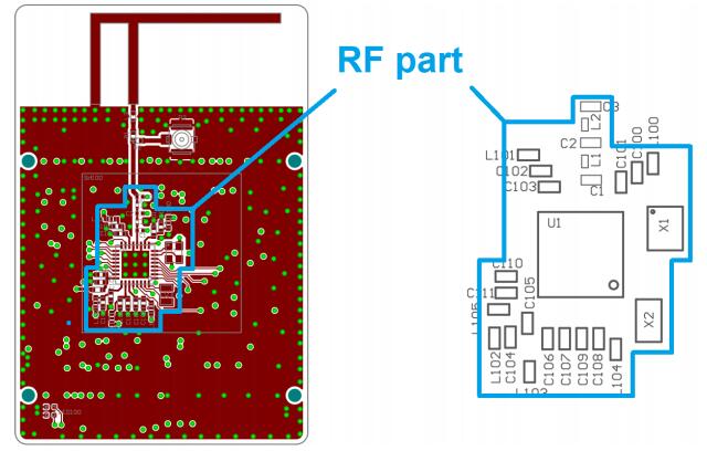 •對于自定義設計,請盡可能使用與參考設計相同數量的PCB層。與參考PCB層數出現偏差會導致不同的PCB寄生電容,無法實現匹配網絡的最佳形態。如果需要層數與參考設計不同的設計,請確保頂層和內部第一層之間的距離與參考設計相似,因為這個距離決定了接地的寄生電容值。否則可能會出現匹配網絡失調,可能需要微調元件值。