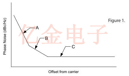 在所需信號的各種偏移處的響應圖通常由對應于振蕩器中的三個主要噪聲產生機制的三個不同斜率組成,如圖1所示.相對靠近載波(區域A)的噪聲稱為閃爍FM噪聲;其大小主要取決于晶振晶體的質量.最佳近距離噪聲結果是在4-6MHz范圍內使用5次泛音AT切割晶體或第3次泛音SC切割晶體獲得的.雖然平均效果不是很好,但使用10MHz區域中的3個泛音晶體也可以獲得出色的近距離噪聲性能,尤其是雙旋轉型,較高頻率的晶體由于其較低的Q值和較寬的帶寬而導致較高的近距噪聲.