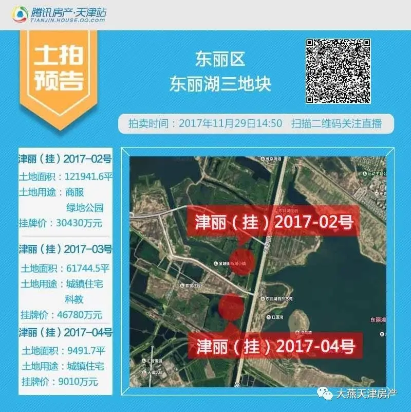 津丽(挂)2017-04号将于11月29日15:30进行摘牌,据了解,其位于东丽区东丽湖智景东道以南、东丽湖路以西,现状为场清地平。