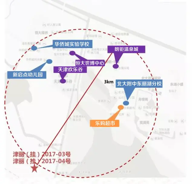 津丽(挂)2017-03号及津丽(挂)2017-04地块,在地理位置上距离津汉公路仅1.5公里,周边配套齐全,商业、学校、娱乐等类型均在周围分布、包括乐购超市、幼儿园以及中小学,欢乐谷、温泉城等。